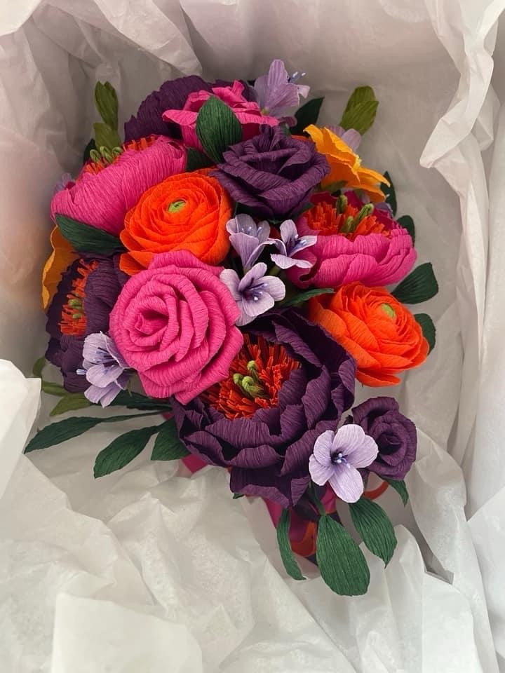 I have a soft spot for dahlias as they were the main flowers at my wedding. I hand picked them from a dahlia flower farm a couple of days before. My wedding bouquet was actually made of paper and was my homage to rave culture as I love bright colours.
